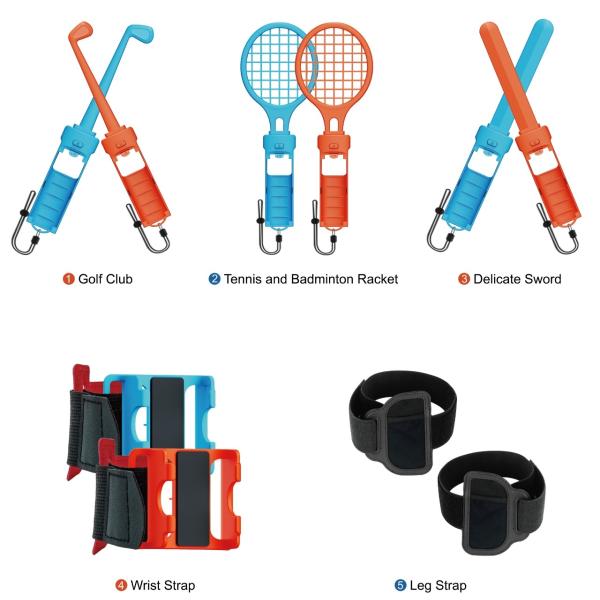 Content : Leg Strap*2+Wrist Strap*2+Sword*2+Tennis Racket*2+Golf Club*2